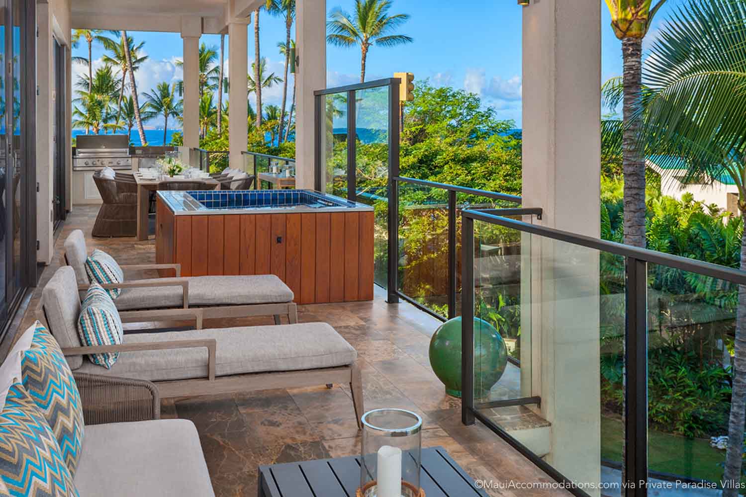 This contemporary home provides more than 3,200 square feet of indoor and outdoor living space, 3 tranquil and uniquely decorated bedroom suites each with a full en-suite bath, great room, a spacious kitchen with butler’s pantry, and convenient access to the beach and pools. The 3 generously sized bedroom suites can sleep up to 8 guests and offer a California King bed in the Master and 2nd bedrooms, and 2 Queen beds in the 3rd bedroom. Amore Aloha Villa 813 has 3 full en-suite bathrooms plus an additional powder room full bathroom with shower. Guests also have use of their very own outdoor covered patio with gas grill, private hot tub/jacuzzi on the patio, and outdoor dining and lounging furniture.