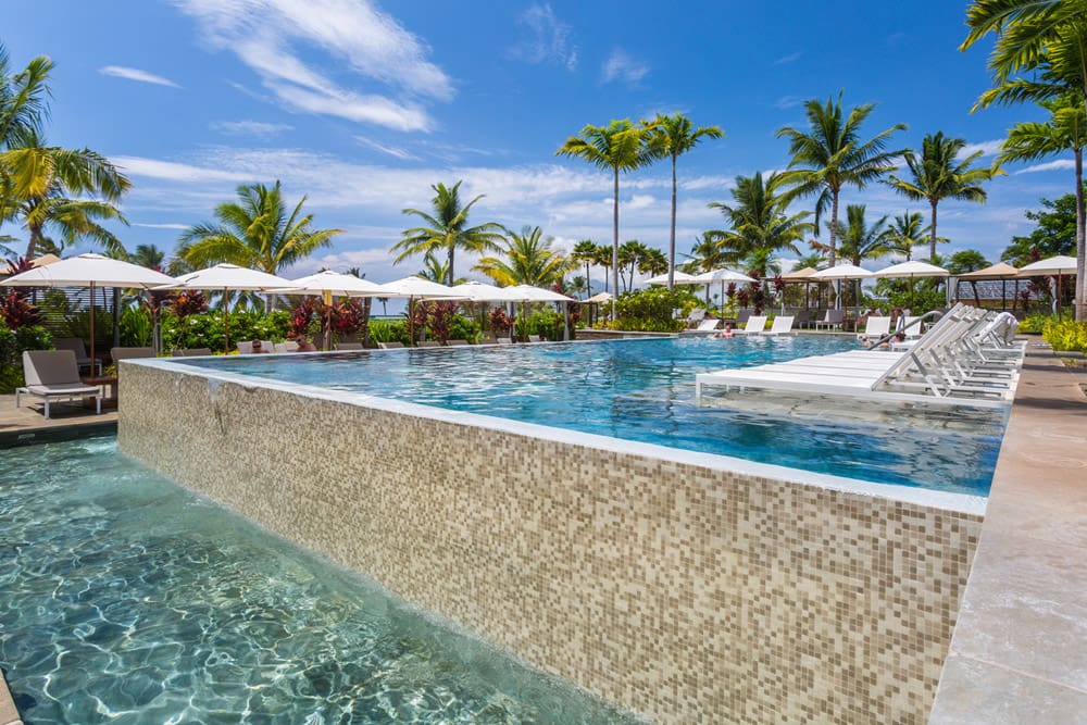 Andaz Maui at Wailea Resort is a sublime tropical eden situated directly on golden Mokapu Beach. With a west-facing location, guests will bask in an abundance of sunshine. Hang out on the beach for a spectacular show of sparkling stars at night. Enjoy a low density, low rise resort where waterfalls, tiki torches, and beautiful blooming flowers and verdant green fauna decorate your surroundings. The expansive swimming pools are a first for Maui. The flowing water begins its journey at the entry lounge, then gently cascades down through sloping terrain until it gently ponds in the large pool directly in front of Villa 810 and just above Mokapu Beach.