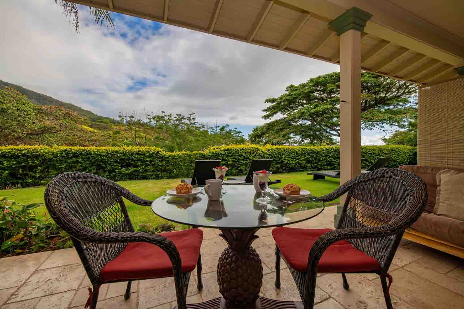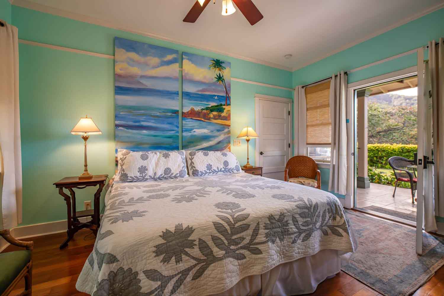 Iao Valley Inn Orchid Room has proven to be a godsend for visitors seeking a more localized Hawaiian experience. This boutique bed and breakfast of only 2 rooms and detached cottage sits on a quiet 37 acres with a private gated entrance. The Inn is wonderfully rural surrounded by monkeypod trees, mango, banana, and papaya plants with echoes of the Wailuku River streaming through the property. This Central Maui location allows a convenient drive to beautiful sandy beaches (15-20 minutes), the major resort areas of South and West Maui (30-40 minutes), and popular visitor attractions, including Iao Valley State Park just 2 miles up the road. After a long day of traveling or lounging at the beach, many of our guests enjoy relaxing to the sounds of Wailuku River on their private lanai, or as they say, “it feels like coming home.”