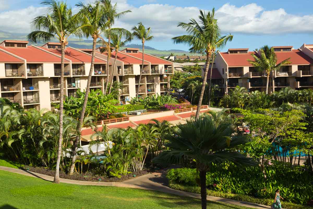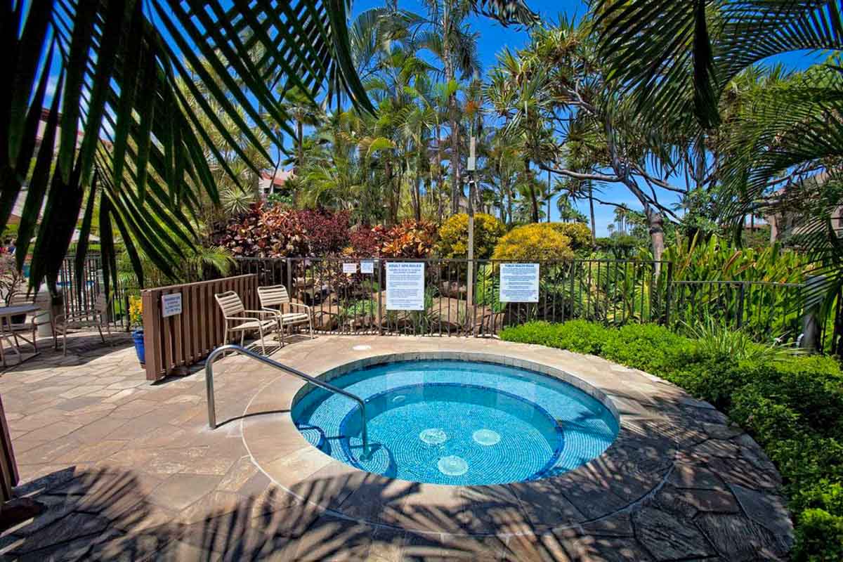 Several ponds with fountains are favorite destinations when wandering the grounds. So is the small play ground at the easily accessed Kamaole III park above the beach.
