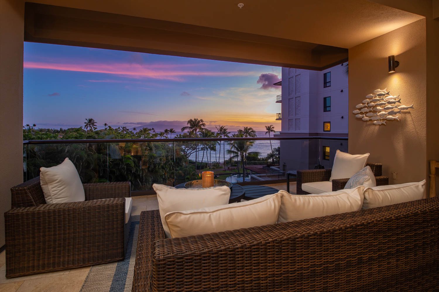 From the semi-private elevator step out into your own private entry foyer. Through a solid glass door you step in to a spacious hallway with gleaming mahogany hardwood floors. The hallway leads your gaze straight ahead to the ocean view veranda. Enter the great room where floor to ceiling sliding glass doors frame the westerly view. Just outside the sunset glistens off the pools, and the palm trees gently sway. Your private veranda has an outdoor dining table for up to six guests, chaise lounges, and club chairs. The outdoor living area is so comfortable you may never want to even venture down to the swimming pools or the ocean front walking path.