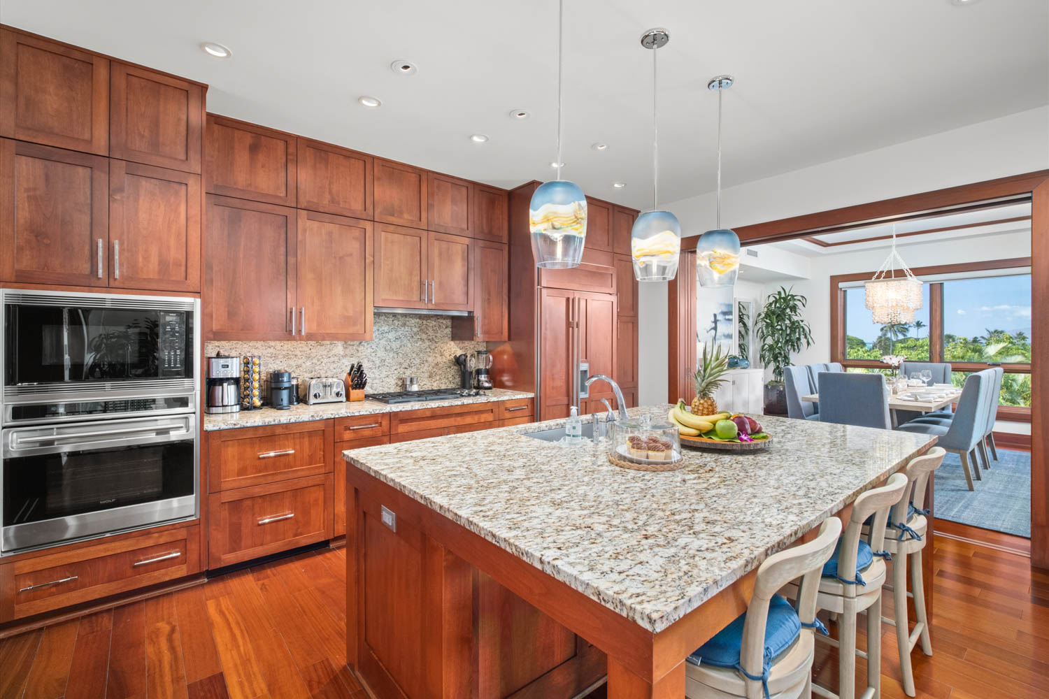 The kitchen is complete with every imaginable small appliance for your cooking pleasure. Just a few fun things we added… dual coffee makers, Nespresso capsule machine, coffee grinder, French press, supply of fresh locally roasted coffee (regular, decaf, French roast, etc.), teas, electric tea kettle, top-quality high-powered blender, waffle maker, juicer, mixer, rice cooker/crock pot, hot air popper, deep-fryer, and a full supply of fine quality cookware, dinnerware, crystal glassware (martini, margarita, white wine, red wine, champagne flutes, pilsners, etc.), sugars, herbs and spices, plastic and paper items for kids, coffee to-go cups, etc. The true gourmet kitchen features premium appliances such as a Sub-Zero refrigerator with ice-maker and water dispenser, Sub-Zero wine fridge, 5 burner Wolf gas cooktop, built-in Microwave, Convection Oven, Dishwasher, and additional refrigerated beverage drawers.