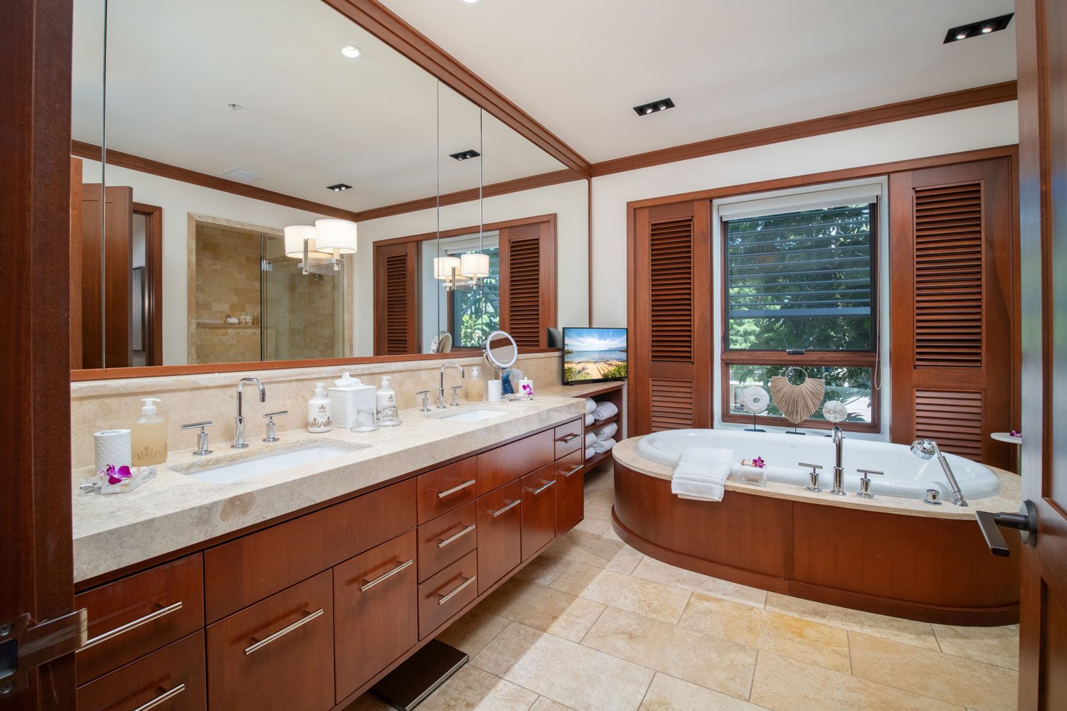 Reservations at Maui Haven Premier Grand Residence 5201 at Montage Kapalua Beach include complimentary Spa Montage passes for guests 16 years of age and over. Spa Montage offers a state-of-the-art fitness center, outdoor co-ed infinity pool with whirlpool and lounge chairs on sun deck, state-of-the-art Kinesis fitness circuit that is the only one of its type in Hawaii, hydrotherapy circuits complete with eucalyptus steam room, cedar wood dry sauna, cascading whirlpool and cool rainfall shower separate for men and women. There are expansive changing areas with fresh linens and toiletries, showers, restrooms, toiletries, bathrobes, slippers, and locking storage units. Spa Montage is a full service spa offering a variety of spa and salon services with 30,000 square feet indoors and 15,000 square feet of outdoor space. Montage Kapalua Bay is Hawaii’s 4th and newest Forbes 5 Star Property and is the ONLY 5 Star spa in Hawaii!!!