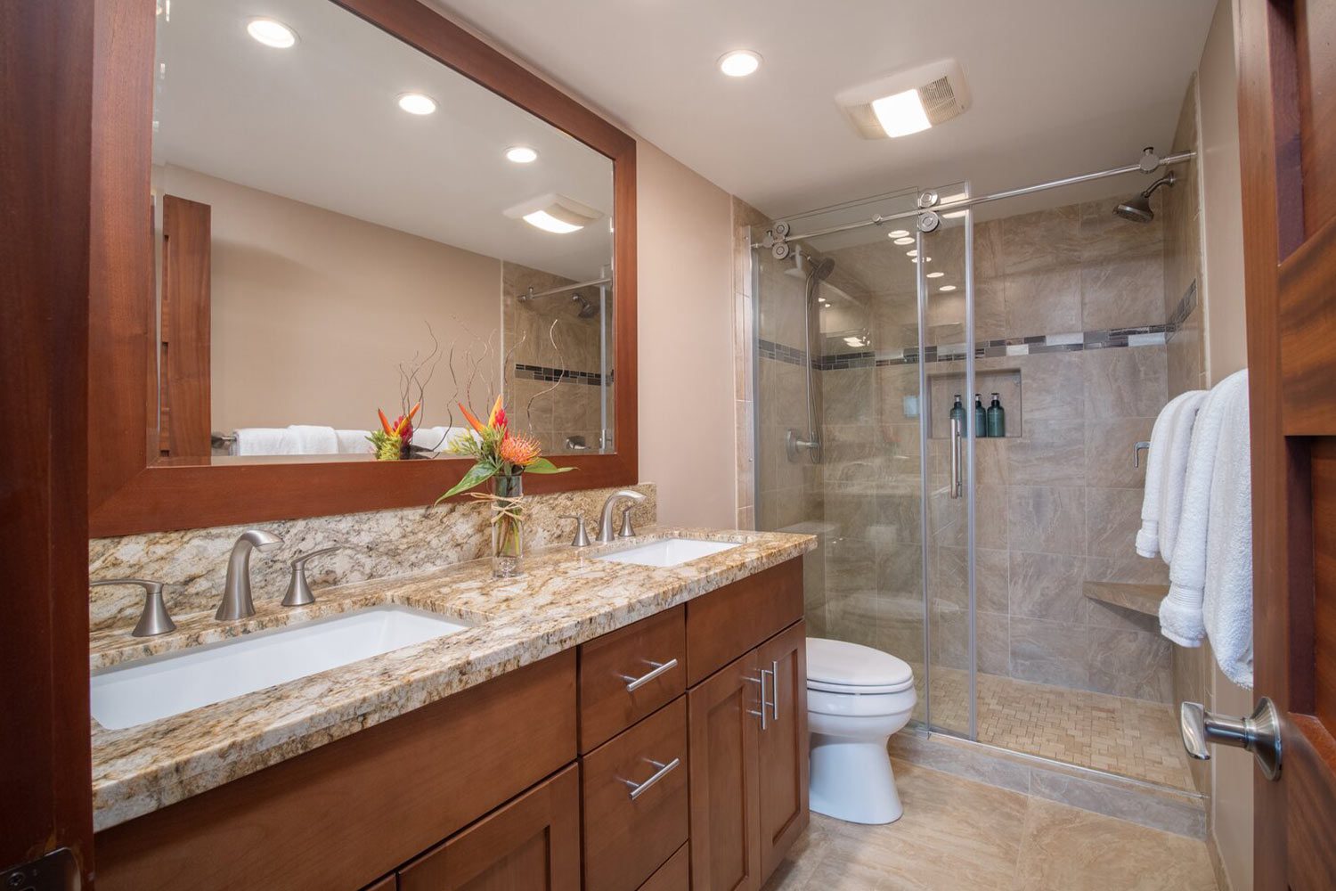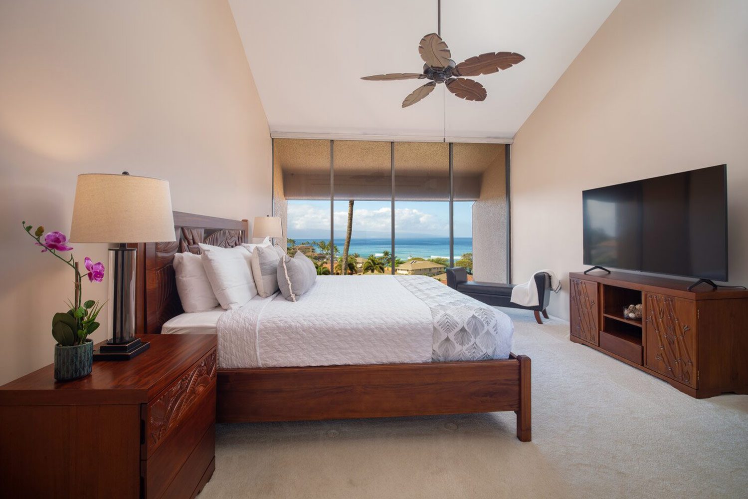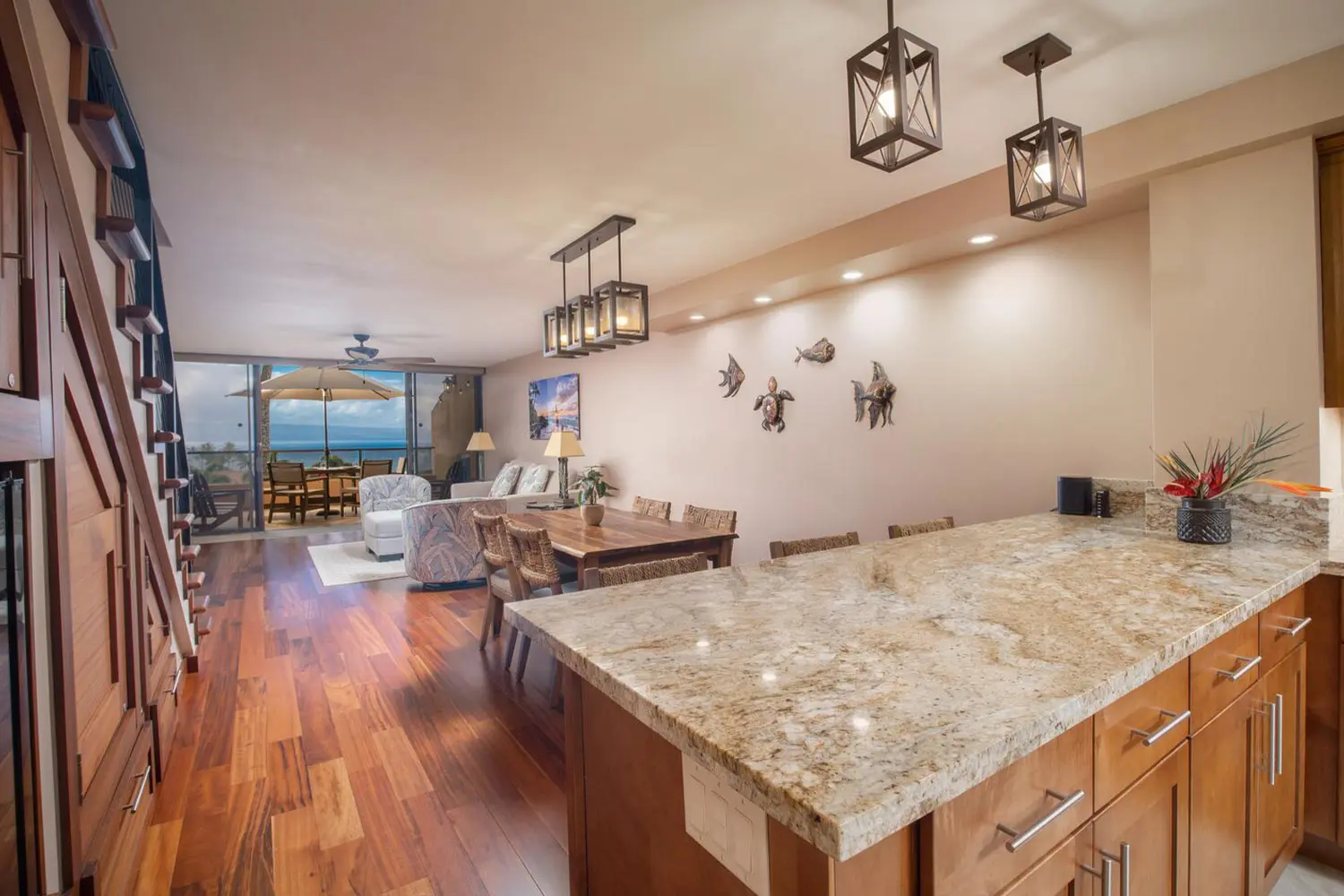 No need to adventure too far, though! Kahana Villa has all of your resort amenities without the crowds! Relax in the jacuzzi or take in the sun poolside, brush up on your tennis and pickleball skills, or ‘talk story’ at the BBQ area. Stay in and cook in your private, fully equipped Chef’s kitchen and enjoy al fresco dining on the lanai! Please note that the upstairs bedrooms have AC. The downstairs takes advantage of the natural tradewinds on Maui! Ceiling fans and portable fans are also available.