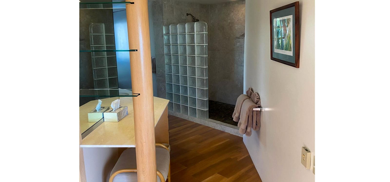 2015 – Replaced tub/shower with glass tile walk in shower; new tile flooring