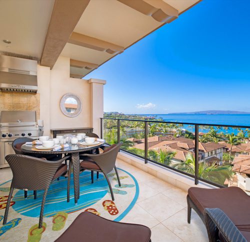 Situated on the top floor of the Penthouse tower building, Wailea Beach Villas Pacific Paradise Suite J505 is a true penthouse villa with breathtaking panoramic Pacific Ocean, Wailea Beach and sunset views. This villa offers just over 2,300 square feet of indoor and outdoor living space. Each of the three designer-decorated bedrooms (King/King/Queen) has its own spacious ensuite bathroom filled with Hotel Collection towels. Wailea Beach Villas Pacific Paradise Suite’s light-filled great room is an oversized communal gathering space, while the gourmet kitchen is stocked with absolutely everything necessary to make this your favorite home away from home.