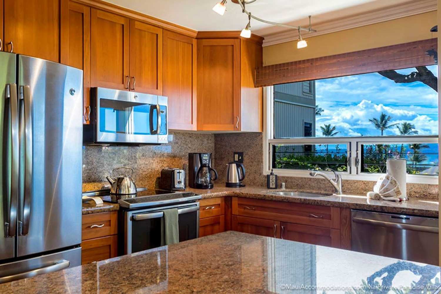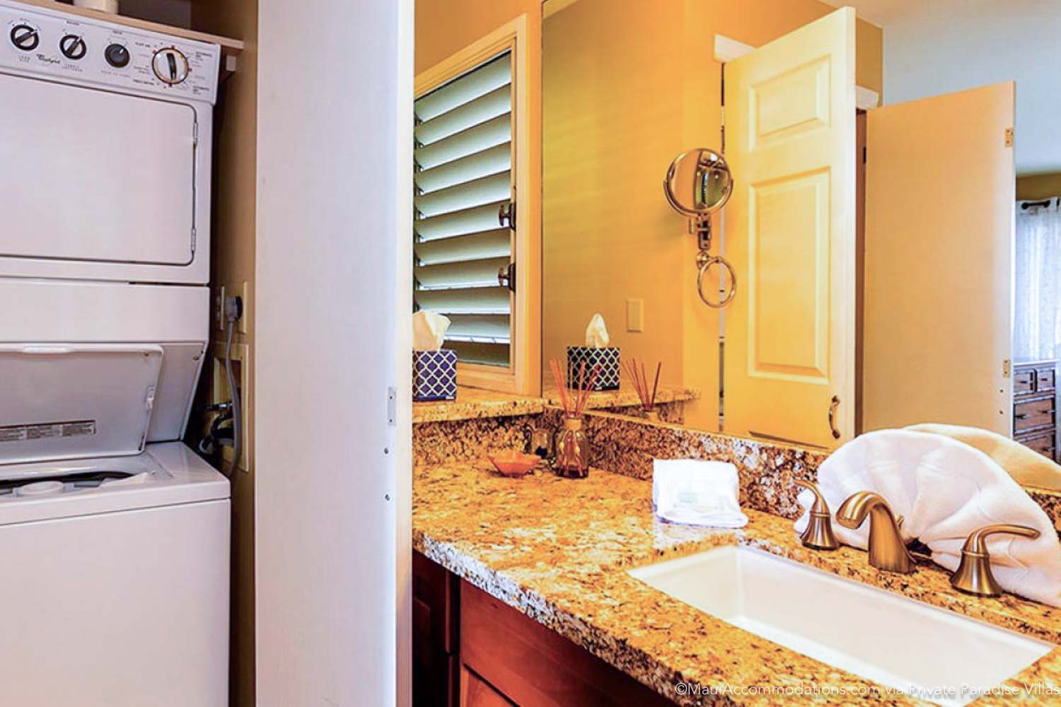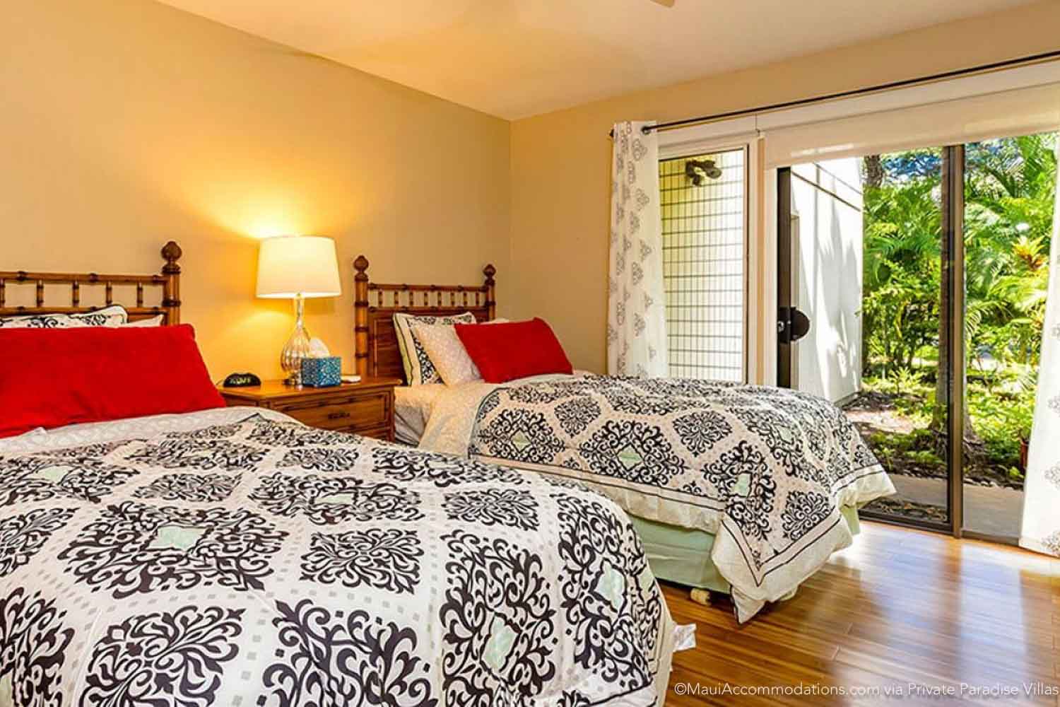 Wailea Ekolu 503 is a 2-bedroom, 2-bath unit on the ground floor with a panoramic ocean view. Recently renovated, it has split A/C system in the living room, a fully-equipped kitchen with high-end appliances, washer and dryer, a flat-screen TV, Blu-ray player, telephone, and free WiFi. The master bedroom has a queen bed and full bathroom with shower. The second bedroom has two brand-new twin beds and full bathroom with shower. For outdoor activity, Wailea Ekolu 503 is equipped with beach chairs, beach towels, and a cooler.