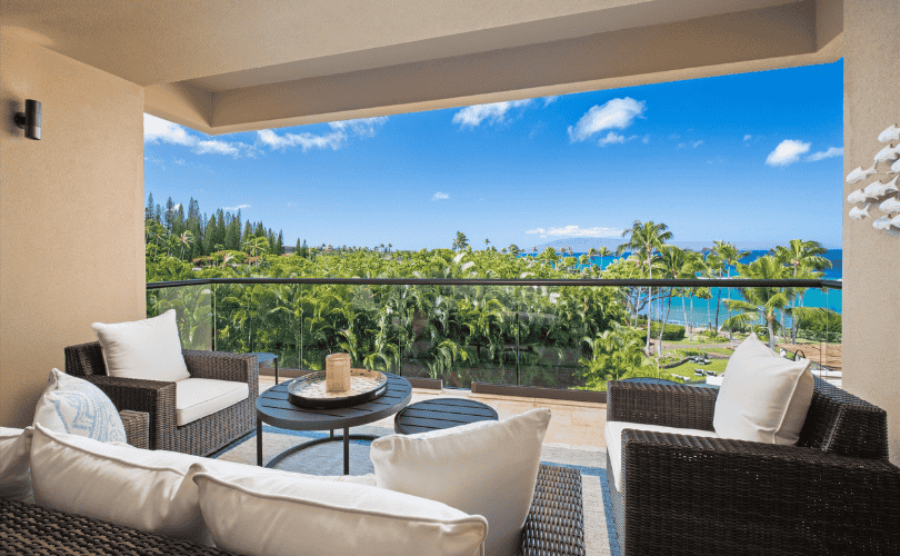 This exquisite 4-bedroom villa has a spectacular panoramic 4th floor ocean view and is nestled between The Grand Wailea & The Shops at Wailea. Magnificently furnished for the sophisticated traveler including a spacious Great Room with a 75″ Smart TV, baby grand piano, lovely artwork, 9′ ceilings, marble floors and three 55″ flat screen smart TV’s in the bedrooms. The full gourmet kitchen of Wailea Beach Villas L-409 is state of the art with granite counters, sub zero fridge & wine cooler, viking grill, dishwasher and more. Book directly with the management company for the best rate!