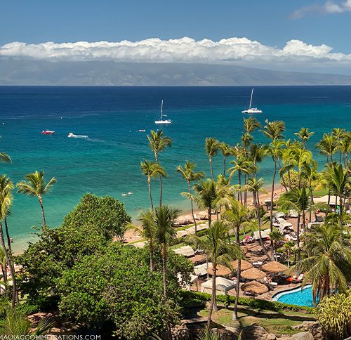 Set on the idyllic Kaanapali Beach, the Kaanapali Alii features a collection of palatial one and two-bedroom residences. The eight-acre property is rife with amenities— like an on-site sundry store and spa— that blend comfort and convenience. Whether you’re traveling with family or jetting off on a romantic getaway, Kaanapali Alii is sure to be your paradisiacal home away from home.